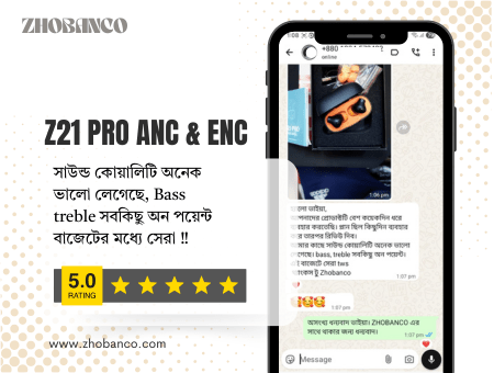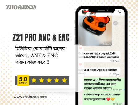 The Hybrid ANC on the Z21 Pro is genuinely impressive! Even in crowded areas like Mirpur, I had no issues during calls. The music experience is also very premium thanks to the noise cancellation. Getting Hybrid ANC at such an affordable price (৳ 2,015) is honestly unbelievable. Zhobanco’s build quality is top-notch. 5/5 Stars!